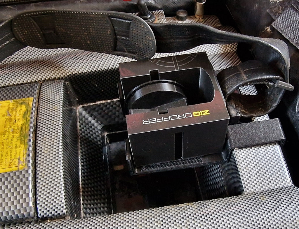 The Zig Dropper is perfectly designed to fit in your bait boat hopper with the included mounting brackets.